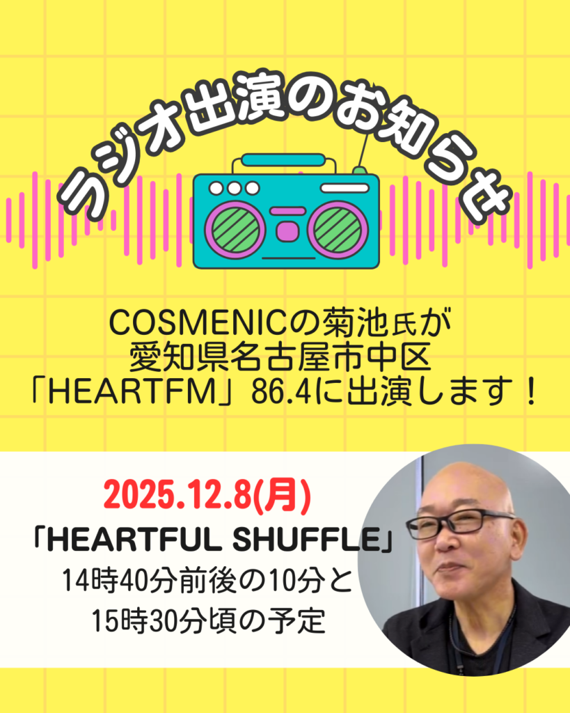 名古屋市中区エリアのコミュニティFMラジオ局 「HeartFM」86.4 に出演することが決定しました。