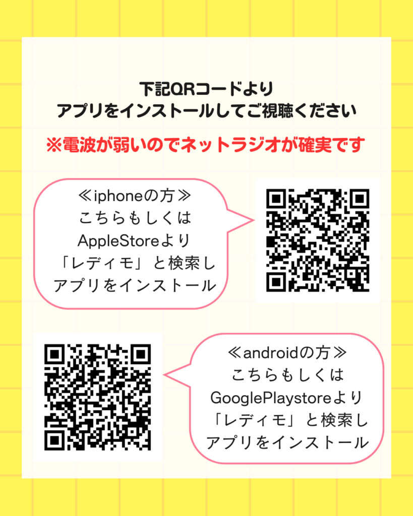 視聴方法 電波が弱いため、ネットラジオ視聴がオススメです